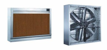 "Exhaust Fan + Cooling Pad" Cooling System - the most economic coolingsystem working principle: In a closed house, the cooling pad and the fan are always oppositely arranged, and the cooling pad is installed on the wall surface facing monsoon wind. When need air cooling, start the fan to force out of air inside the house, forming negative pressure in the house. At the same time, the water pump spray water onto the cooling pad wall, and outdoor air will be inhaled by negative pressure. In the process of inhaling, outside hot air flow through the cracks of cooling pad at a certain speed, leading to evaporation and cooling. Then cold air flow through the house, absorbing heat in the house, and then exhausted out by fan, so as to achieve cooling purpose.